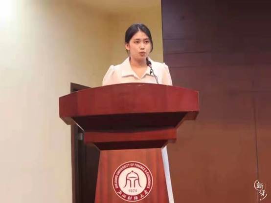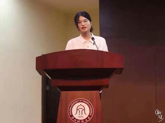 随后,高荻同学,余彬尔同学,潘璐同学分别作为在校生,本科生新生代表,研究生新生代表发言。