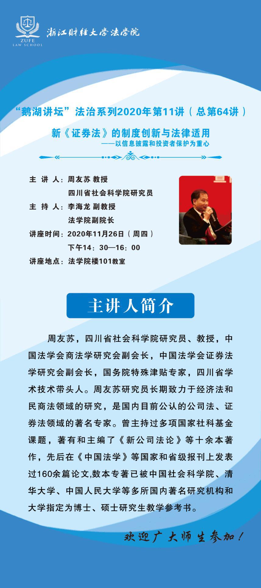 “足交 讲坛”法治系列2020年第11讲(总第65讲)四川省社会科足交 研究员周友苏教授
